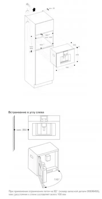 | Дополнительные параметры | Проточный нагреватель воды: моментальная готовность к приготовлению кофе, постоянная температура заваривания Промывка перед каждым завариванием: 100%-я чистота Двойной американо / Флэт Уайт / 2 x Флэт Уайт / двойная порция молочной пены / двойная порция горячего молока / двойная порция горячей воды Управление с помощью поворотных переключателей и сенсорного Текстовый дисплей Возможность запоминания до 8 персональных предпочтений 4 объема напитка, объем может быть индивидуально настроен под размер чашки 8 уровней крепости от самого мягкого до самого крепкого Температура кофе: 3 ступени 10 уровней регулировки температуры для горячей воды Диспенсер подачи напитков с интегрированным каппучинатором Изолированный контейнер для молока из нержавеющей стали до 0.5литров Встроенная подсветка со светодиодами Контроль заполнения дренажного поддона для воды и отсека для отработанного кофе Рекомендации по монтажу: Идеальная высота установки 95 - 145 см (верхний край нижней части ниши) Необходимо предусмотреть зазор между прибором и фасадом мебели мин. 5 мм Фасад прибора выступает на 21 мм от уровня мебели При установке в углу необходимо предусмотреть боковой зазор Угол открытия дверцы ок. 110° - монтажное расстояние до стены должно быть не менее 350 мм Угол открытия дверцы ок. 155° - монтажное расстояние до стены должно быть не менее 650 мм Угол открытия дверцы ок. 92° - монтажное расстояние до стены должно быть не менее 100 мм Возможна установка без перегородки над шкафами для подогрева посуды WS высотой 14 см в стандартную нишу высотой 59 см Для подключения к Home Connect, необходимо соединить прибор с роутером при помощи LAN-кабеля (рекомендуется) или через WiFi Разъем для подключения LAN-кабелярасположен сзади прибора в левом верхнем углу относительно фронта Потребляемая мощность в режиме ожидания / выключенного дисплея 0.5 Вт Время автоматического режима ожидания / включенного дисплея 30 мин Время автоматического режима ожидания / в сети 30 мин Размеры прибора в упаковке (мм) (ВхШхГ) 540 x 475 x 670 Потребляемая мощность в режиме ожидания / сети2 Вт |