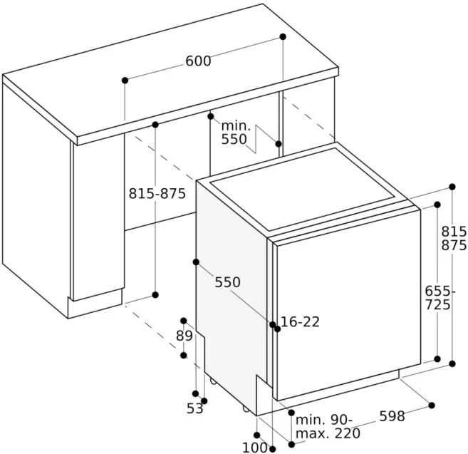 | Дополнительные параметры | Автоматическое открытие двери работает только при активации Home Connect Информационная кнопка для вызова подсказок Необходимый вырез под цоколь: 10 см Максимально допустимый вес фасада: 8.5 кг |