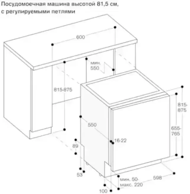 | Размеры ниши для встраивания (ВхШхГ) (см) | 81.5-87.5х60х55 |