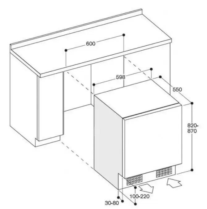 Тип: встраиваемый. Вид: холодильник без морозильника.
