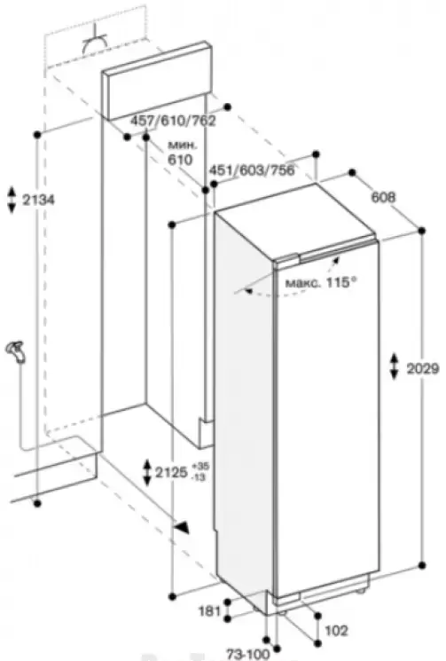 | Габариты ниши для встраивания (ВхШхГ) (см) | 213.4х76.2х61 |