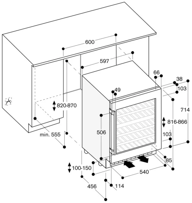 | Дополнительные параметры | Возможность размещения бутылок Magnum Тип материала полок: бук и алюминий Автоматическое затемнение при закрытии двери Цветовая температура освещения: 3000 К Функция декоративной подсветки Угольный фильтр рассчитан на обе зоны Фильтр от пыли с возможностью мытья в посудомоечной машине Плоские петли Для установки рядом со стеной требуется зазор 150 мм |