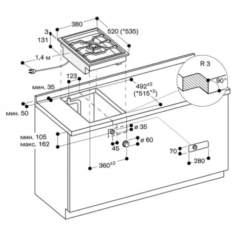 | Размеры ниши для встраивания (Ш х Г), см | 36 х 49.2 |
