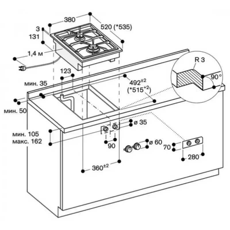 | Размеры ниши для встраивания (Ш х Г), см | 36 х 49.2 |