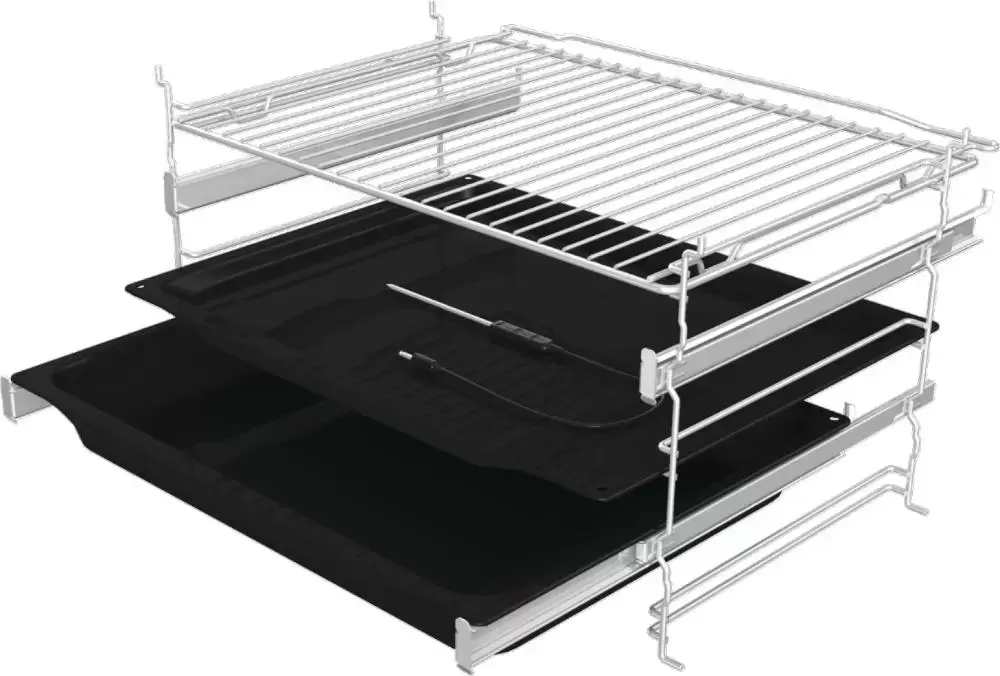 | Комплектация | Телескопические направляющие (2-уровневые) Решетка Термощуп Глубокий противень Мелкий противень |