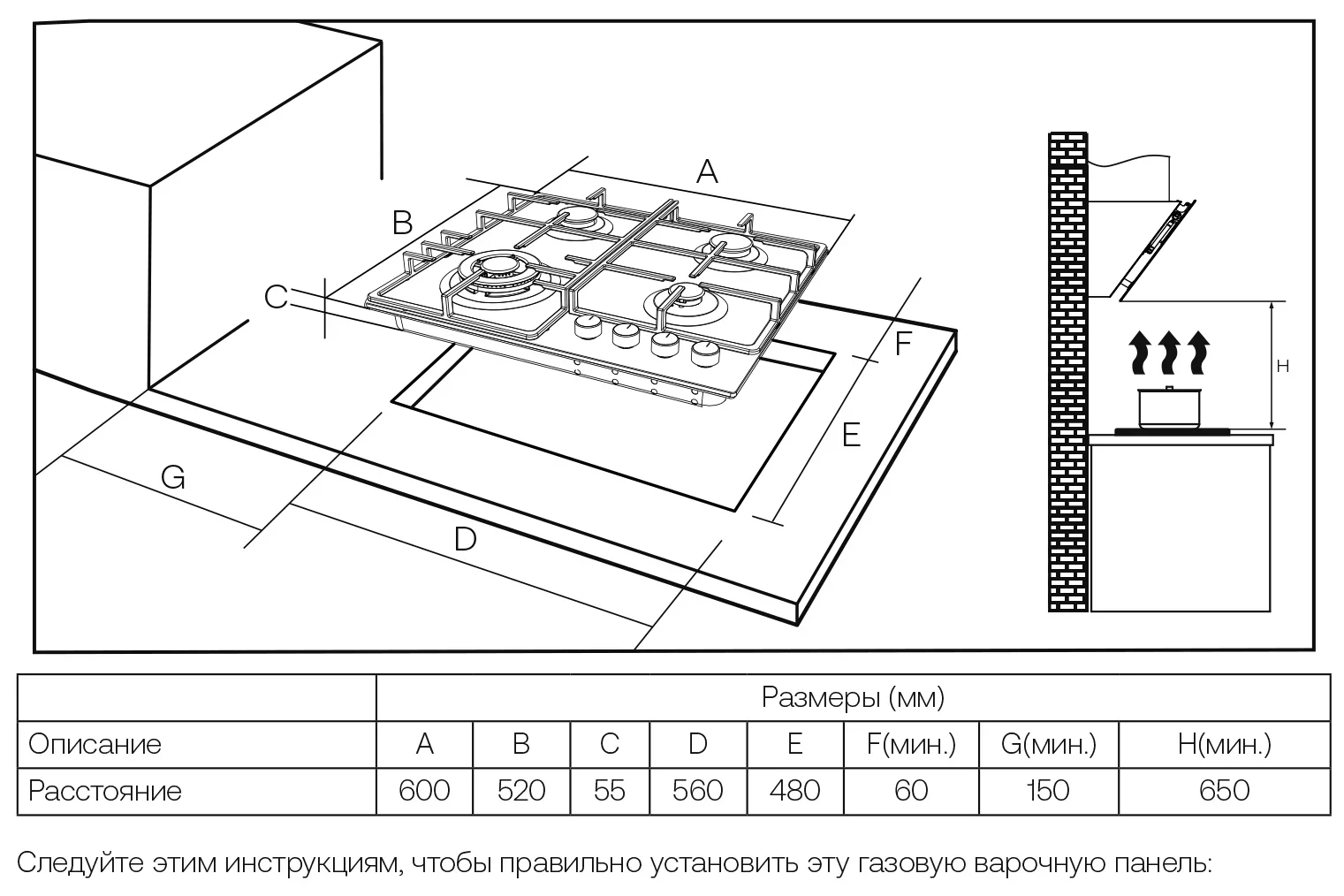 | Размеры ниши для встраивания (Ш х Г), см | 56х48 |