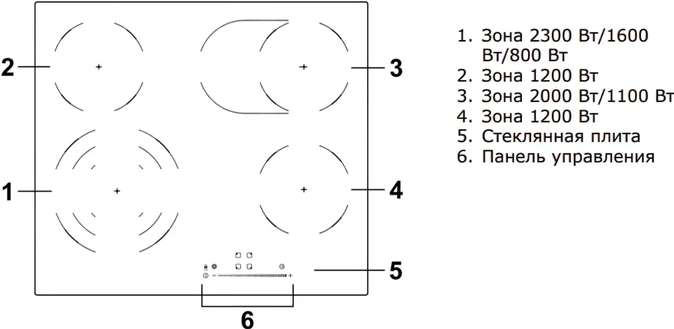 | Индикаторы | Индикатор остаточного тепла Индикация уровня мощности |
