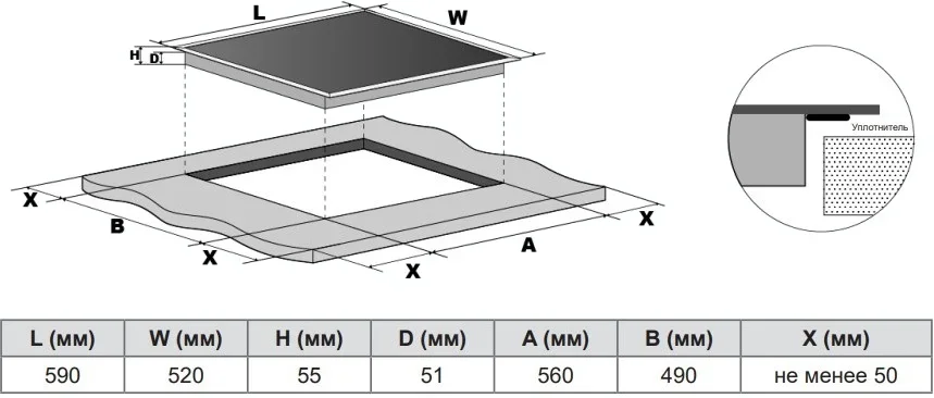 | Размеры ниши для встраивания (Ш х Г), см | 56х49 |