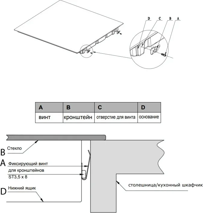 | Панель конфорок | Стеклокерамика |