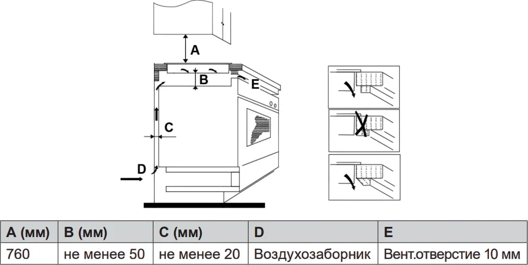| Размеры ниши для встраивания (Ш х Г), см | 56х49 |