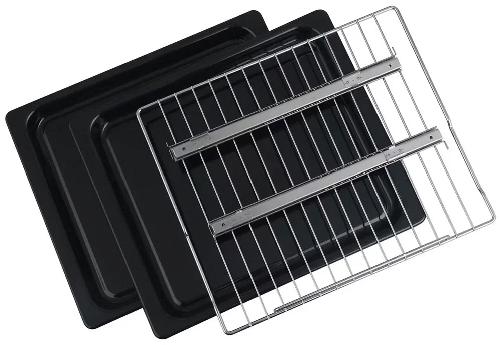 | Комплектация | Телескопические направляющие (1-уровневые) Решетка Противень для выпечки Глубокий противень |