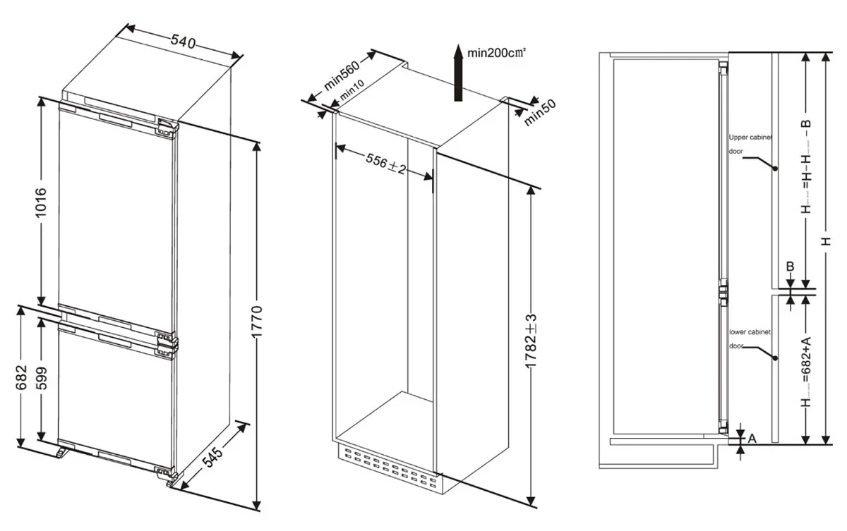 Тип: встраиваемый. Вид: холодильник с морозильником.