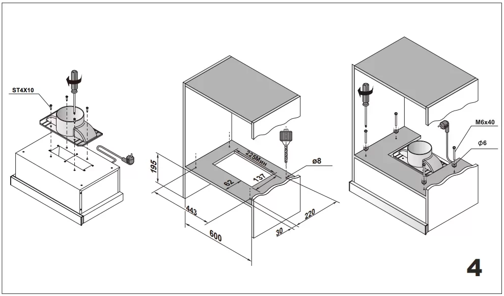 | Габариты ниши для встраивания (ВхШхГ), см | 19.5х60х25 |