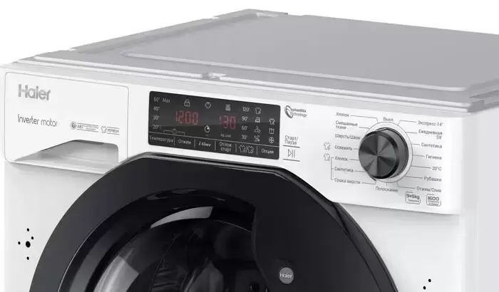 Встраиваемая стиральная машина с сушкой Haier HWDQ90B416FWB-RU — флагманская модель в линейке Haier, стиральная машина высшего класса.