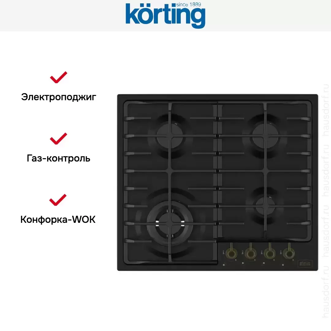 Газовая варочная панель Korting HG 674 CTRN — варочная панель премиального сегмента, итальянского производства, сочетающая надёжность и передовые технологии Korting.