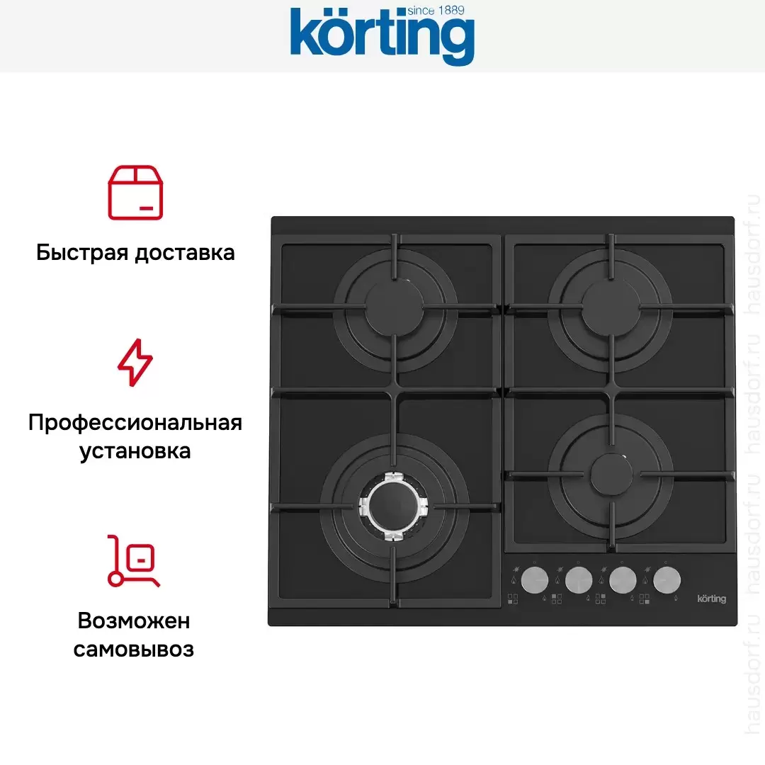 Газовая стеклянная варочная панель Korting HGG 6734 CTN — флагманская модель в линейке Korting (итальянского производства), варочная панель высшего класса.