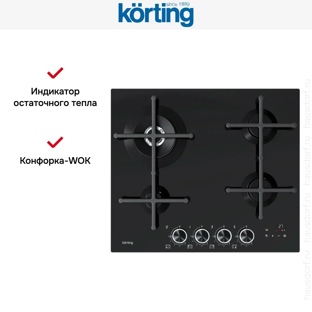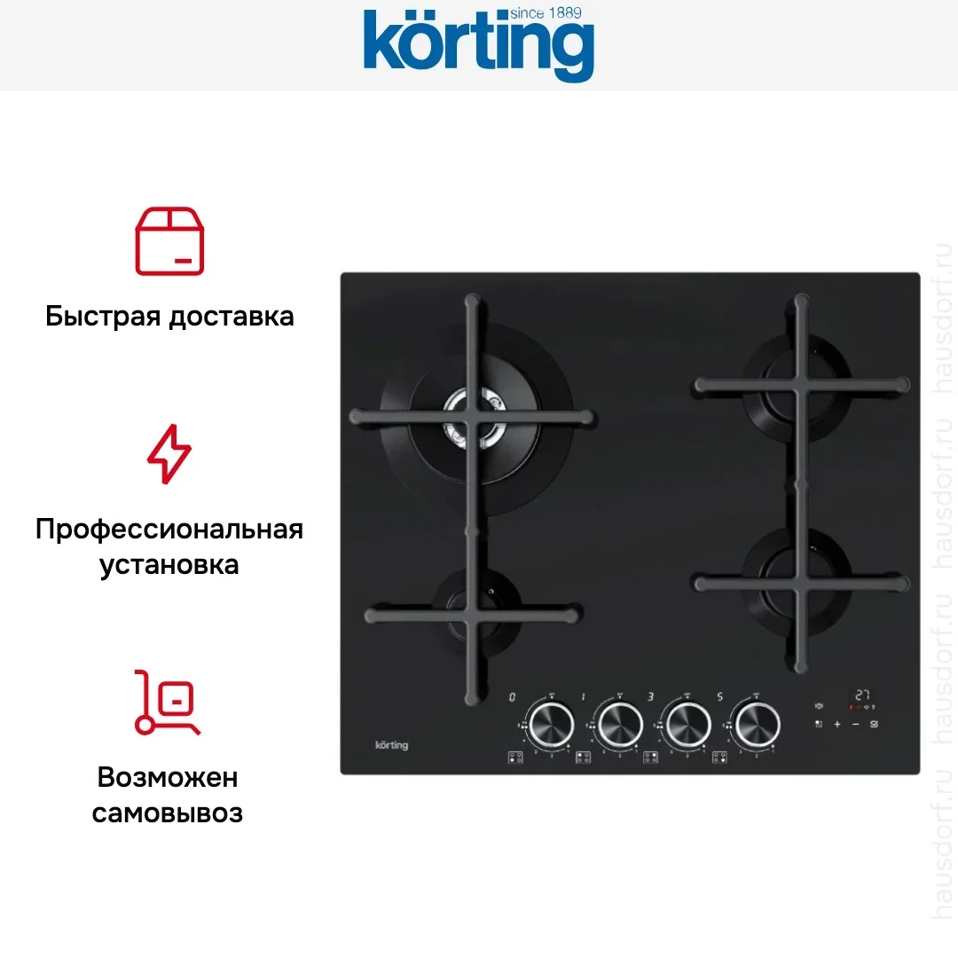 Газовая варочная панель Korting HGG 6766 ICPTN — варочная панель премиального сегмента, итальянского производства, сочетающая надёжность и передовые технологии Korting.