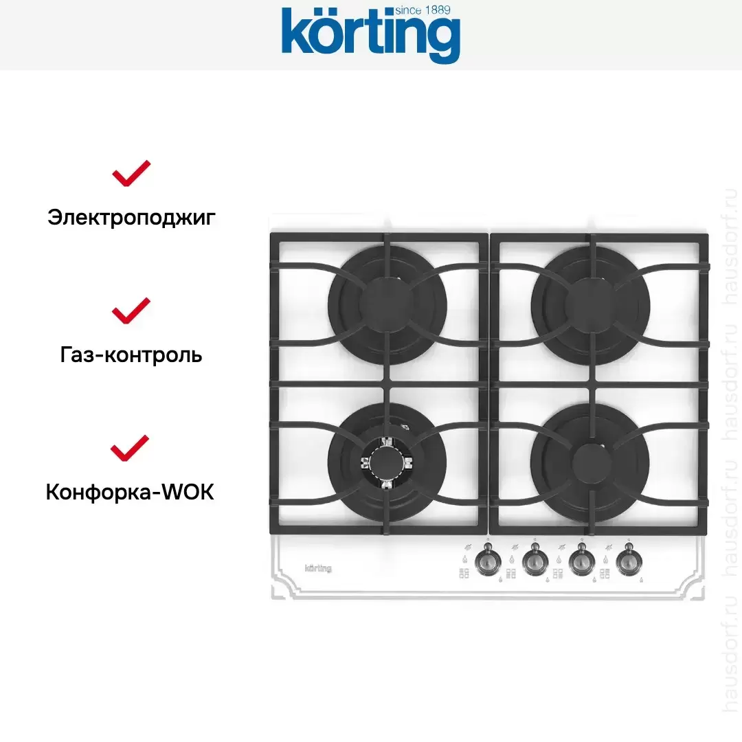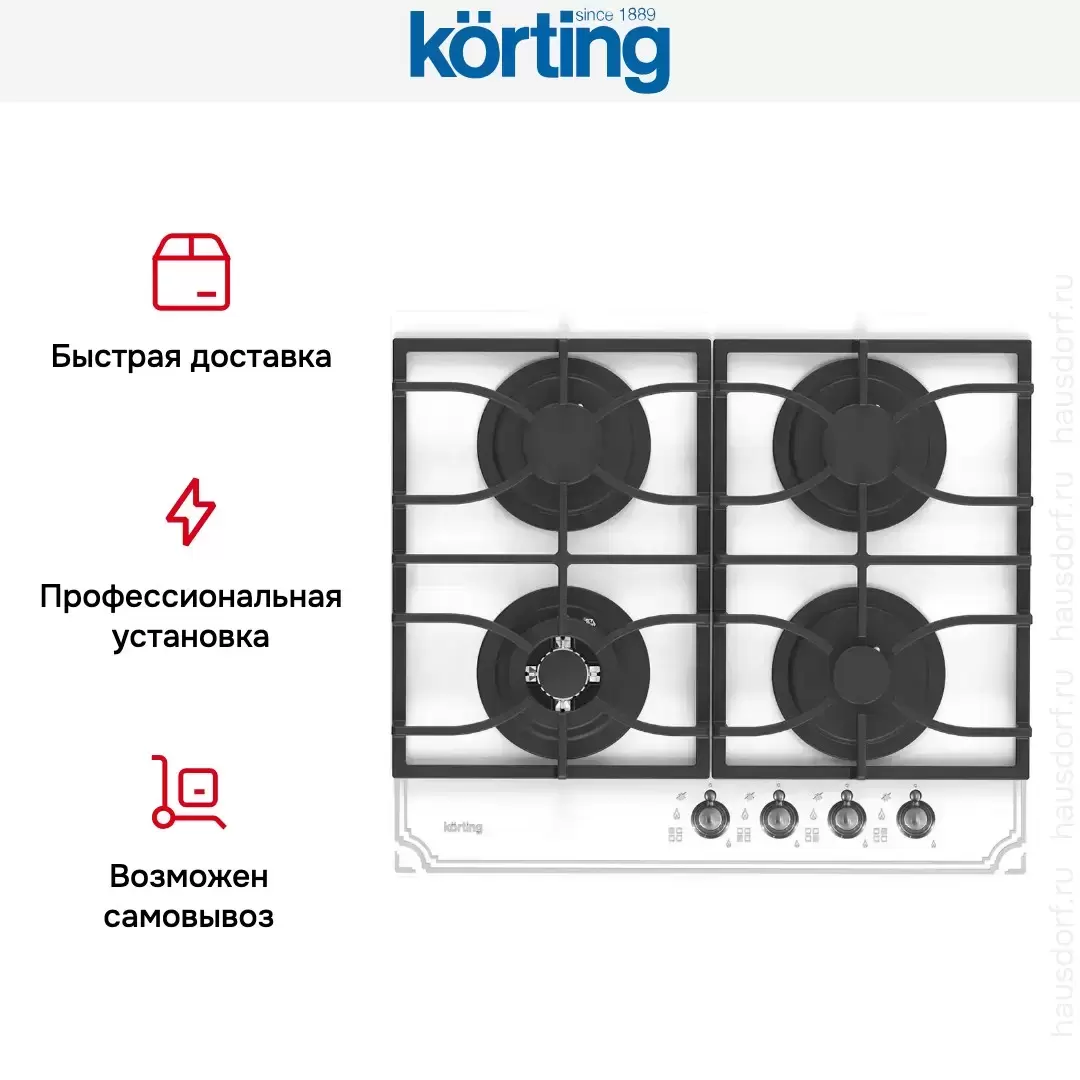 Газовая стеклянная варочная панель Korting HGG 6911 CTRW — флагманская модель в линейке Korting (итальянского производства), варочная панель премиум-класса.