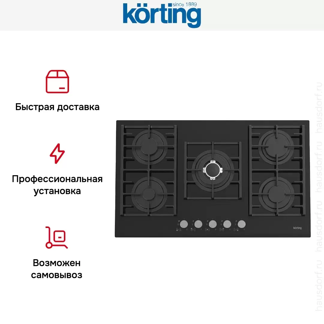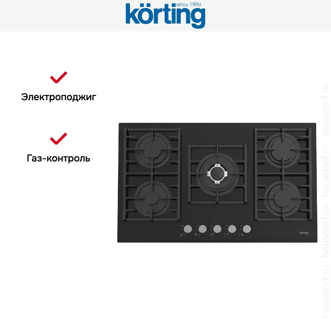 Газовая стеклянная варочная панель Korting HGG 9835 CTN — варочная панель премиального сегмента, итальянского производства, сочетающая надёжность и передовые технологии Korting.