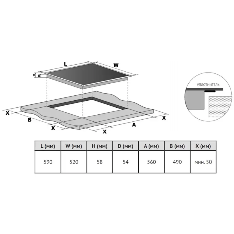 | Размеры ниши для встраивания (Ш х Г), см | 3x56х49 |