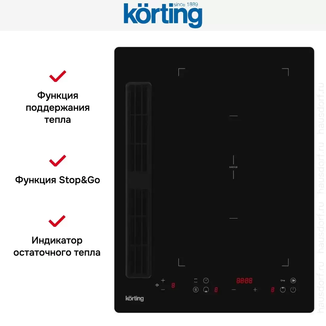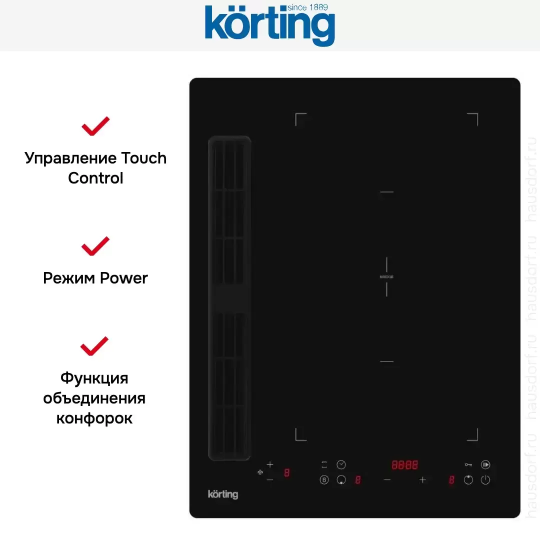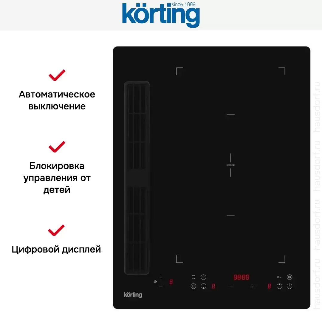 Индукционная варочная панель с интегрированной вытяжкой Korting HIBH 40980 NB — варочная панель премиум-класса, итальянского производства, сочетающая надёжность и передовые технологии Korting.