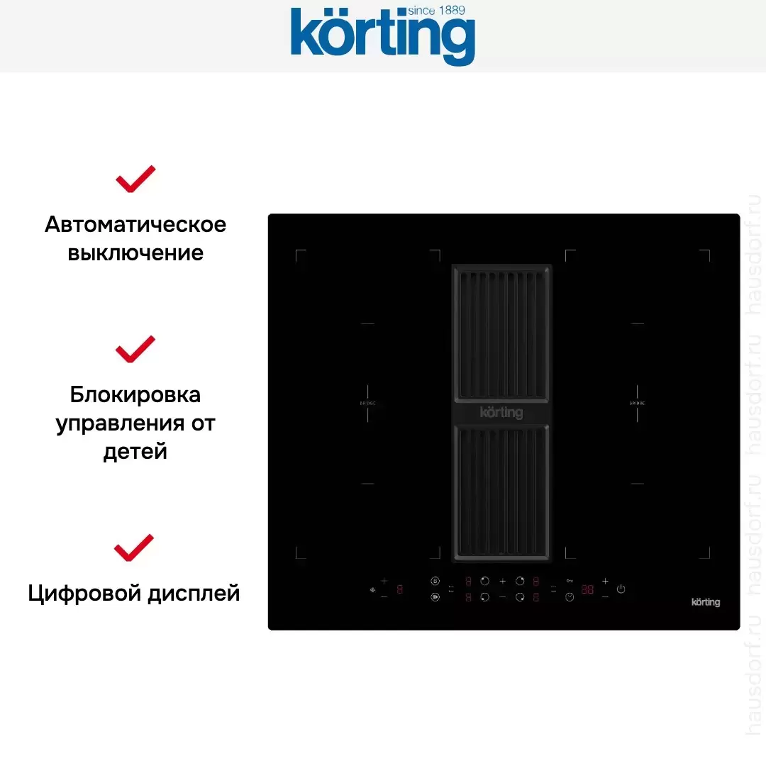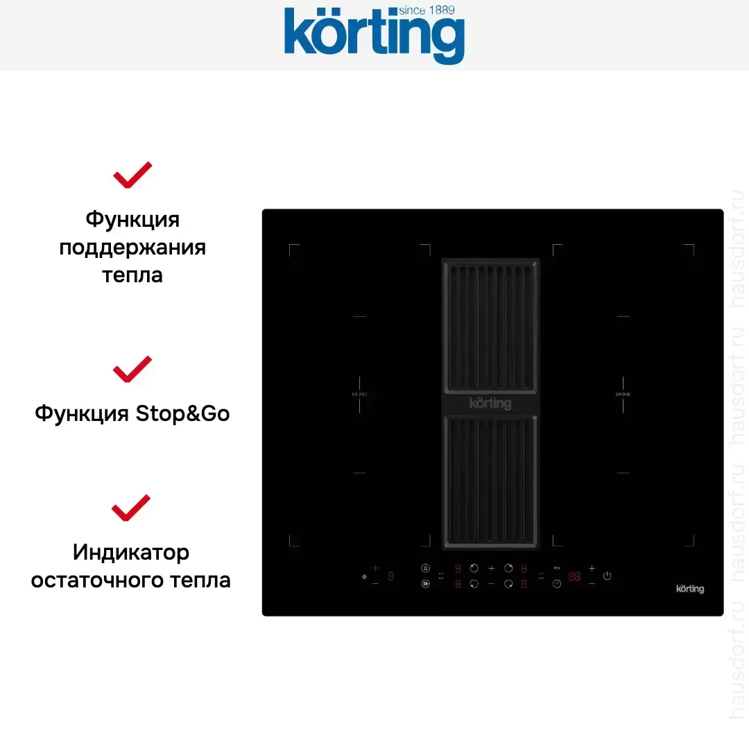 Индукционная варочная панель с интегрированной вытяжкой Korting HIBH 68980 NB — флагманская модель в линейке Korting (итальянского производства), варочная панель высшего класса.