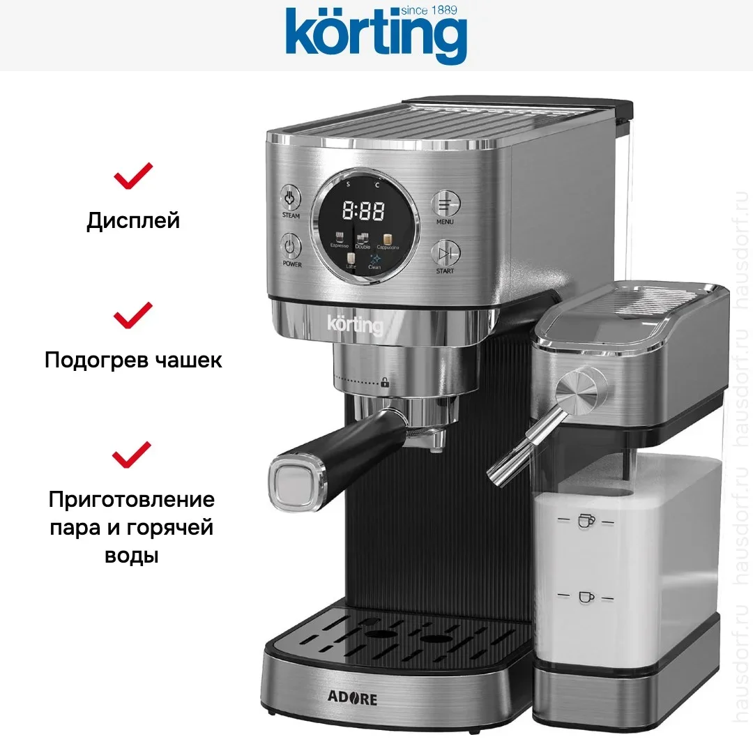 Кофеварка Korting KCM 1006 T Adore — флагманская модель в линейке Korting (итальянского производства), кофемашина высшего класса.