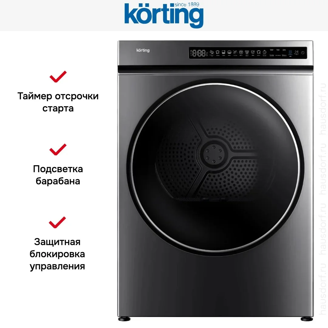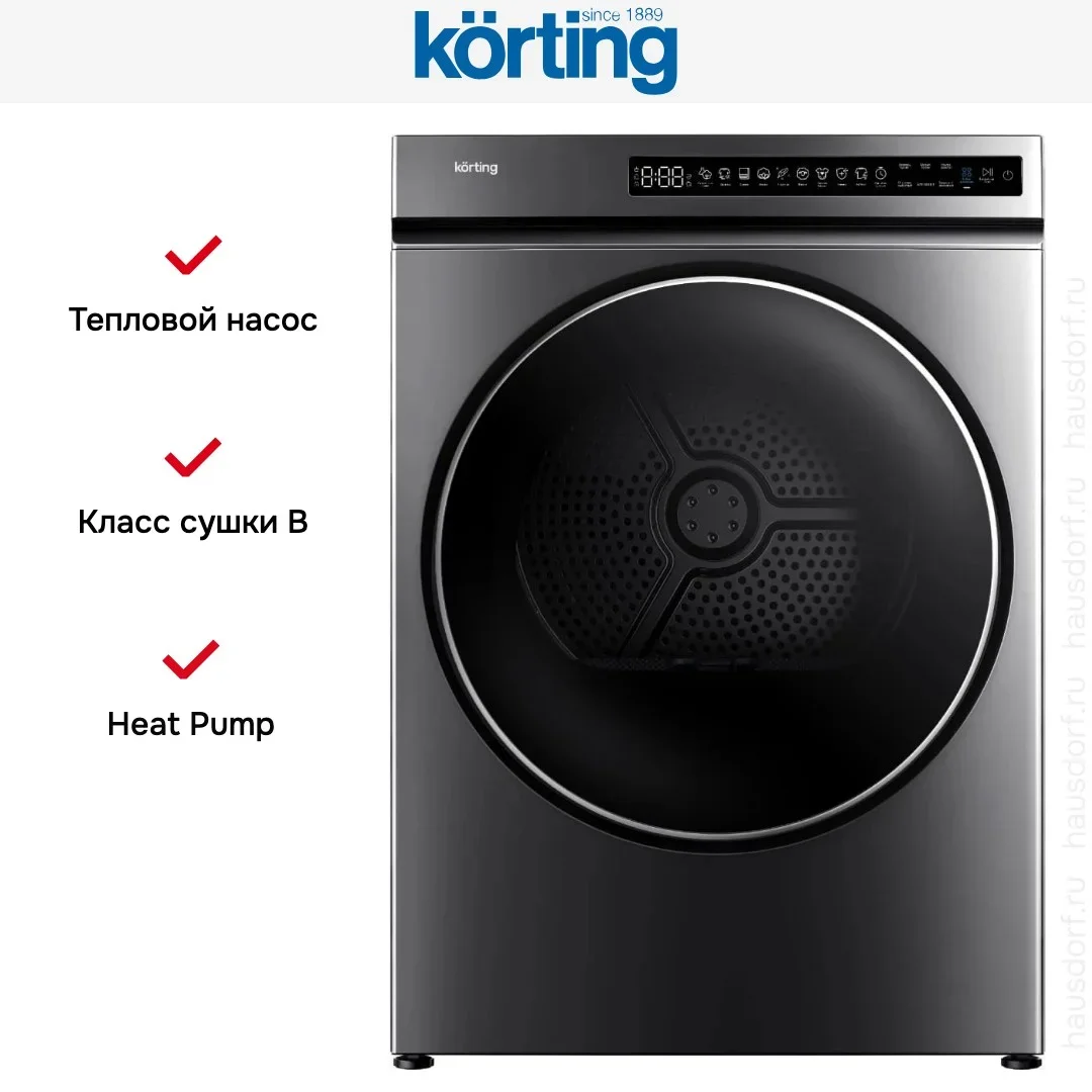 Сушильная машина Korting KD 60IHP83 GR — сушильная машина премиум-класса, итальянского производства, сочетающая надёжность и передовые технологии Korting.