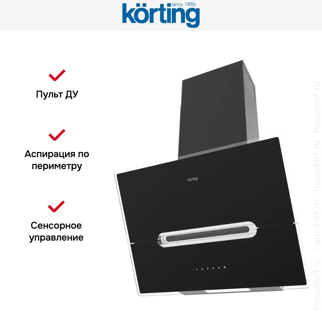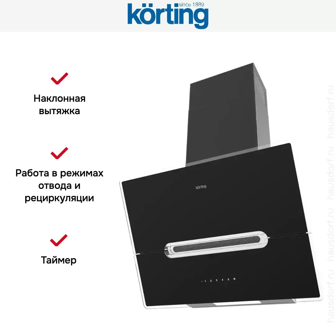 Наклонная вытяжка Korting KHC 61950 GXN — кухонная вытяжка премиального сегмента, итальянского производства, сочетающая надёжность и передовые технологии Korting.