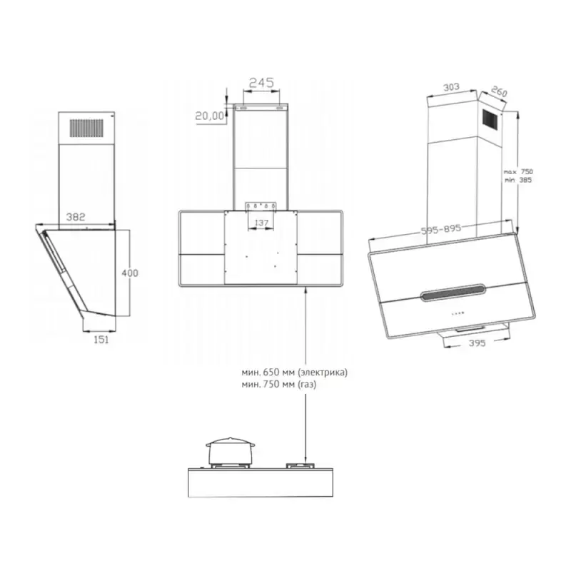 | Тип вытяжки | Наклонная |