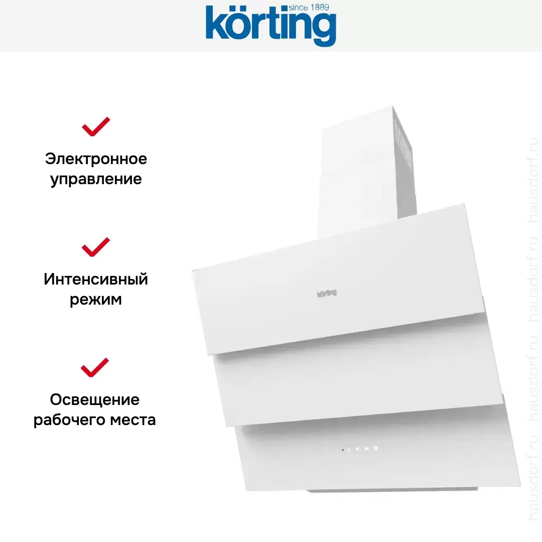 Наклонная вытяжка Korting KHC 68073 GW — кухонная вытяжка премиального сегмента от итальянского производителя Korting.