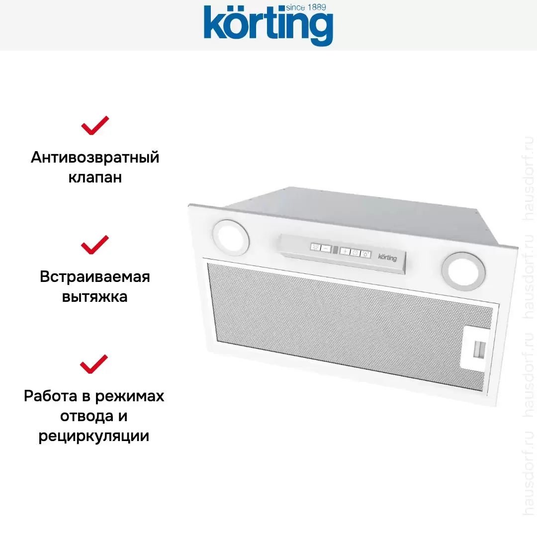 Полновстраиваемая вытяжка Korting KHI 6755 W — кухонная вытяжка премиум-класса, итальянского производства, сочетающая надёжность и передовые технологии Korting.