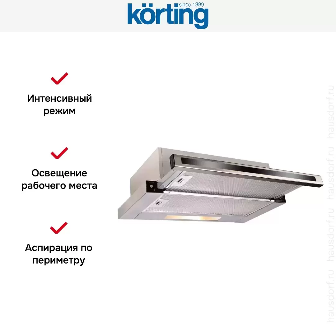 Встраиваемая вытяжка с выдвижным экраном Korting KHP 5637 GNX — флагманская модель в линейке Korting (итальянского производства), кухонная вытяжка высшего класса.