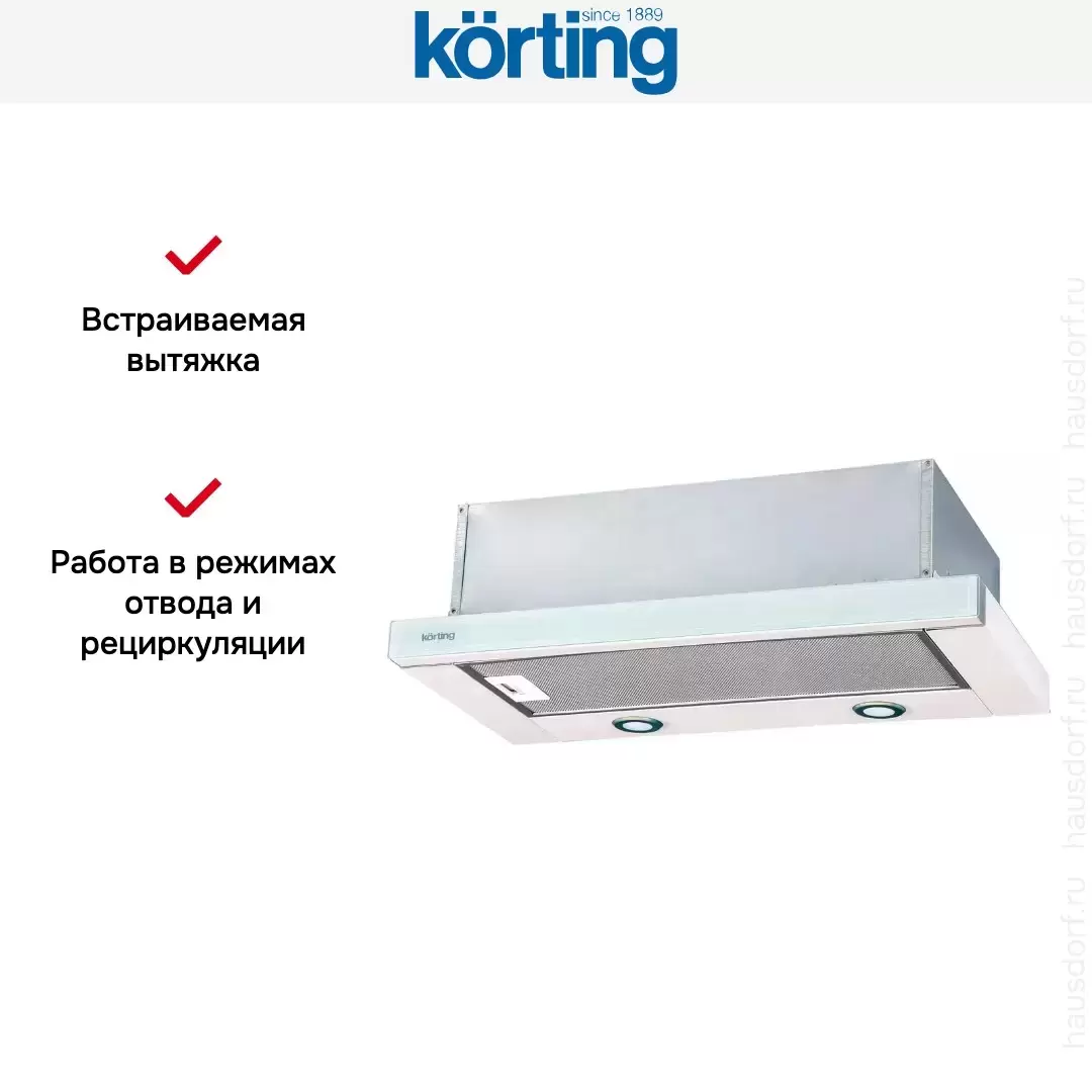 Встраиваемая вытяжка с выдвижным экраном Korting KHP 6617 GW — кухонная вытяжка высшего класса, итальянского производства, сочетающая надёжность и передовые технологии Korting.