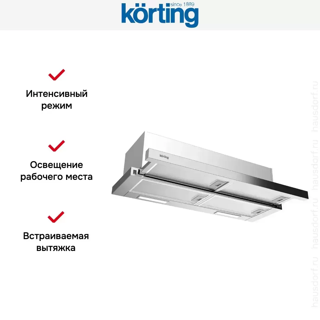 Встраиваемая вытяжка с выдвижным экраном Korting KHP 9815 X — кухонная вытяжка класса люкс, итальянского производства, сочетающая надёжность и передовые технологии Korting.