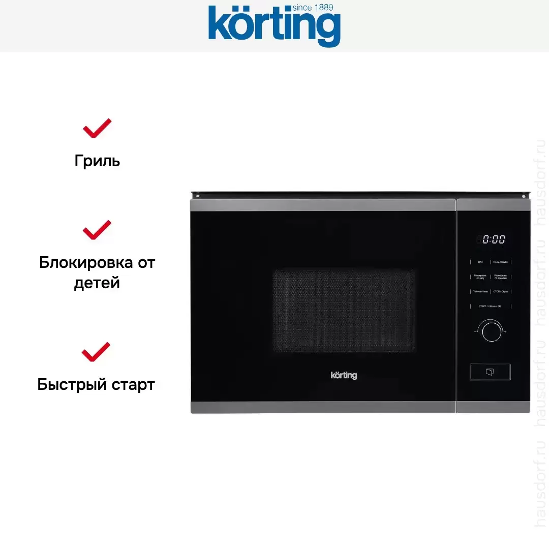 Встраиваемая микроволновая печь Korting KMI 820 GNBX — микроволновая печь премиального сегмента, итальянского производства, сочетающая надёжность и передовые технологии Korting.