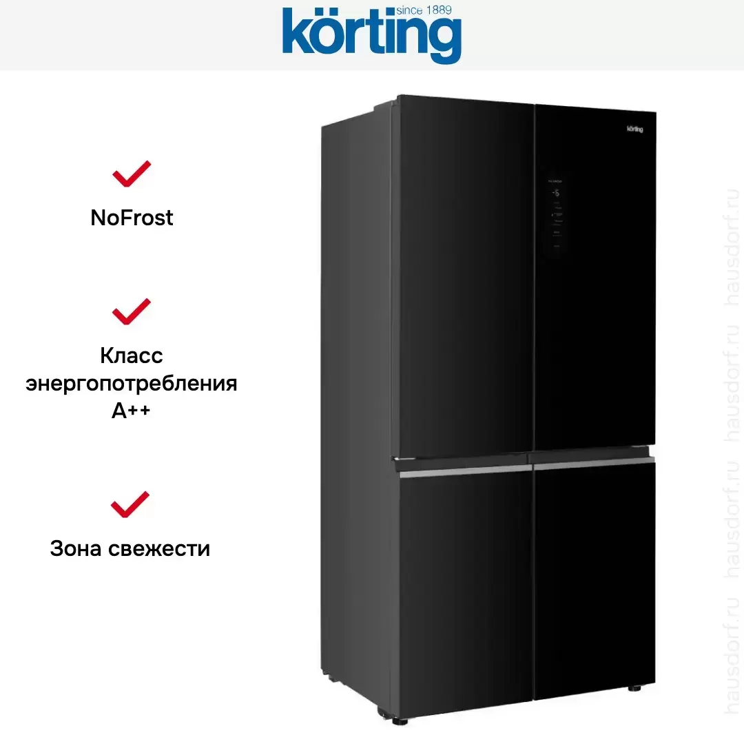 Четырехдверный холодильник Korting KNFM 91868 GN — холодильник премиум-класса, итальянского производства, сочетающий надёжность и передовые технологии Korting.