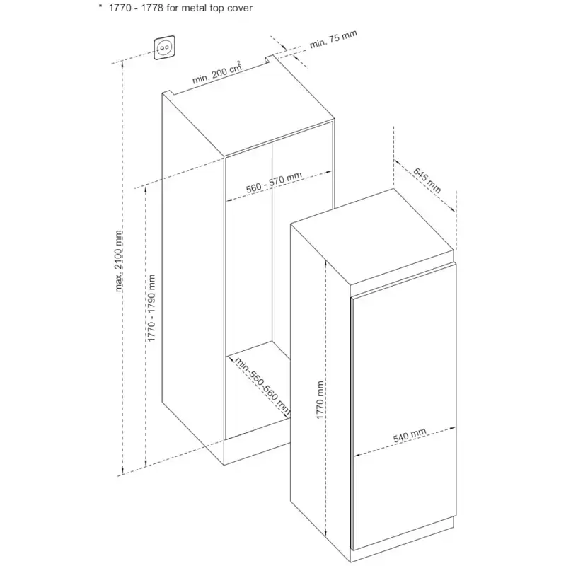 Тип: встраиваемый. Вид: холодильник без морозильника.