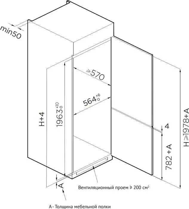 | Габариты ниши для встраивания (ВхШхГ) (см) | 196.3х56.4х57 |