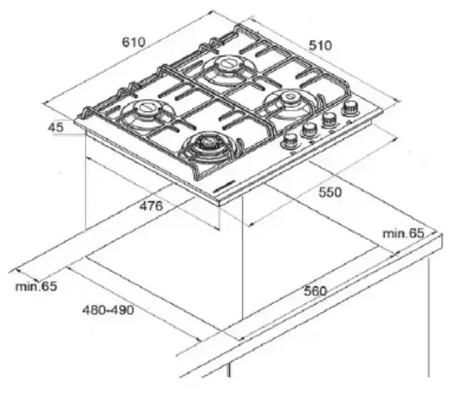 | Дополнительные параметры | Материал поверхности: стекло Тип и давление газа: G20, G30 |