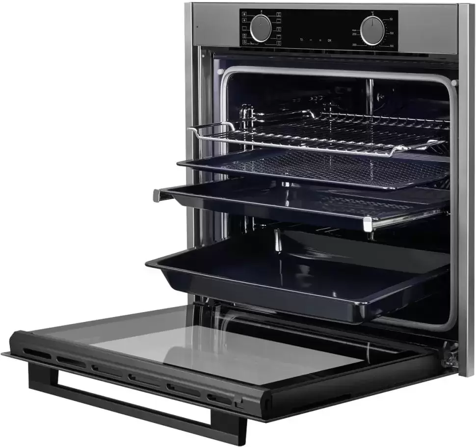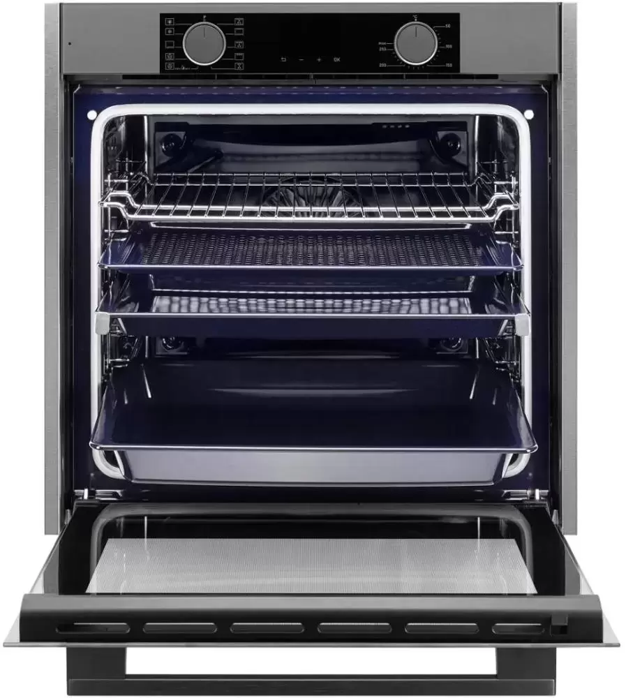 | Комплектация | Телескопические направляющие (1-уровневые) Решетка для гриля Глубокий противень Стандартный противень Перфорированный противень из стали |