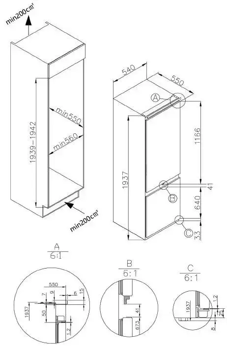 Тип: встраиваемый. Вид: холодильник с морозильником.