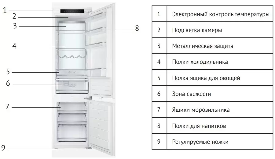 | Серийная комплектация | 1 ящик для овощей 1 навесная полка для бутылок |