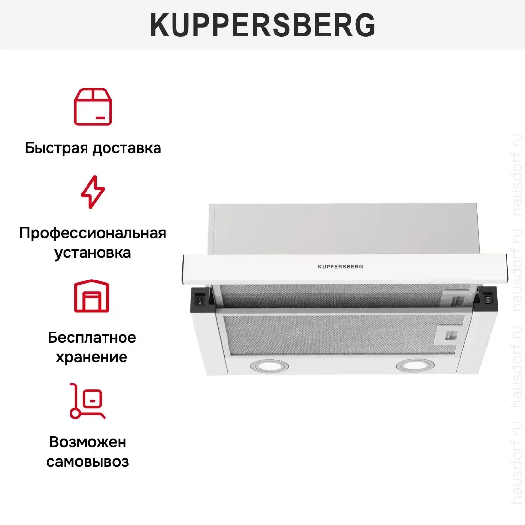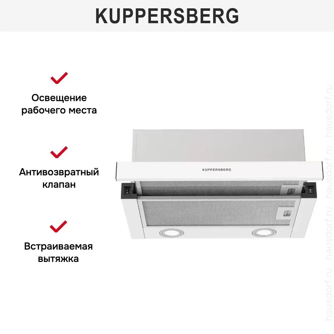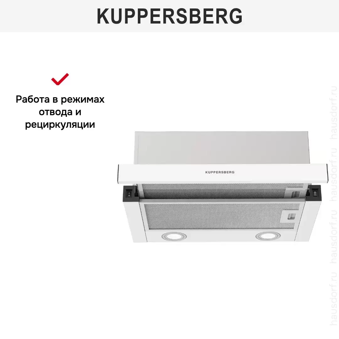 Встраиваемая вытяжка Kuppersberg SLIMHIT 50 W — кухонная вытяжка премиального сегмента, немецкого производства, сочетающая надёжность и передовые технологии Kuppersberg.