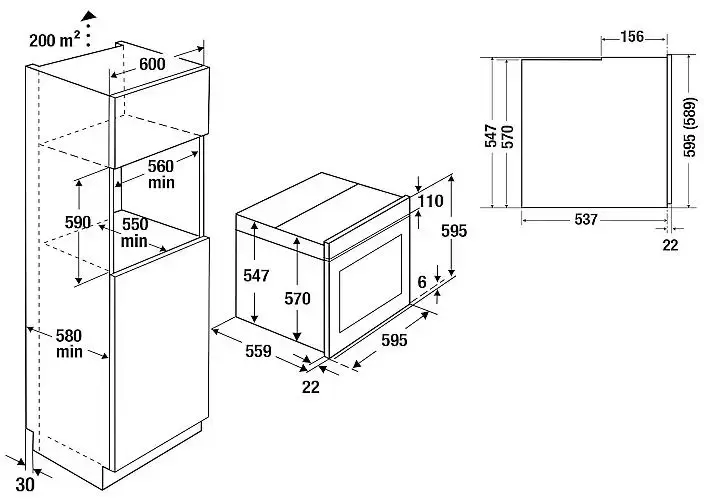 | Размеры ниши для встраивания, ВхШхГ (см) | 59х56х55 |