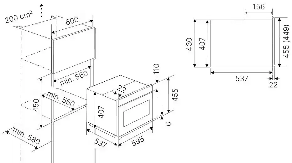 | Размеры ниши для встраивания, ВхШхГ (см) | 45х56х55 |