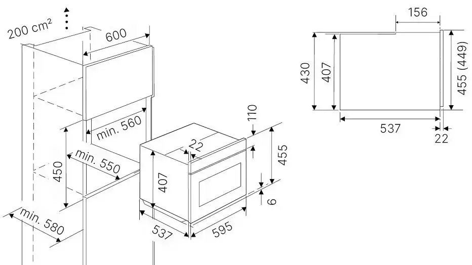 | Размеры ниши для встраивания, ВхШхГ (см) | 45х56х55 |