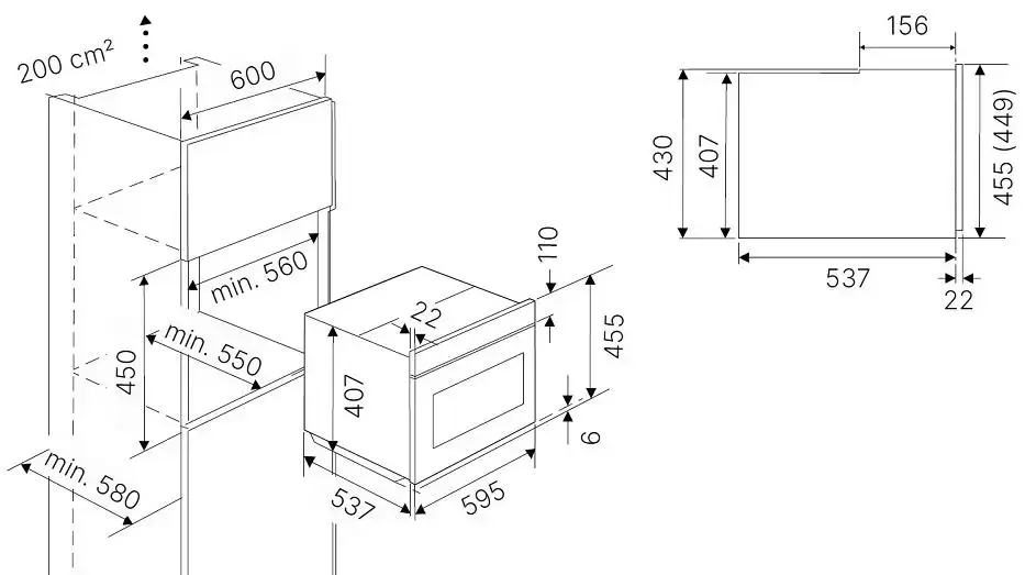 | Размеры ниши для встраивания, ВхШхГ (см) | 45х56х55 |