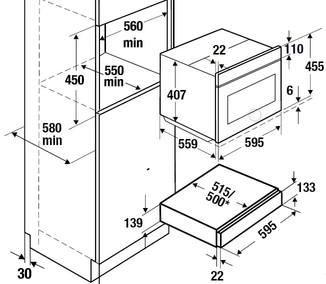 | Габариты ниши для встраивания (ВхШхГ) (см) | 59.5x56х55 (включая прибор высотой 45 см) |
