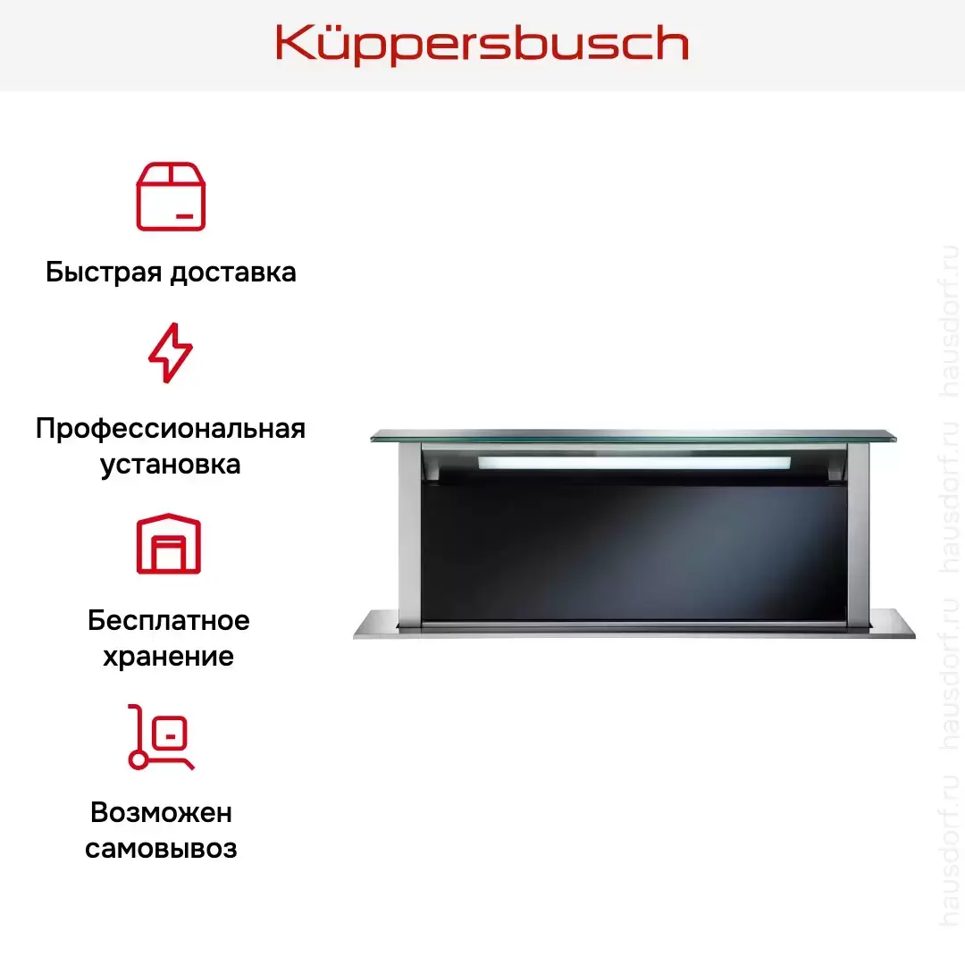 Встраиваемая в столешницу вытяжка Kuppersbusch DD 9840.0 S — флагманская модель в линейке Küppersbusch (немецкого производства), кухонная вытяжка премиального сегмента.